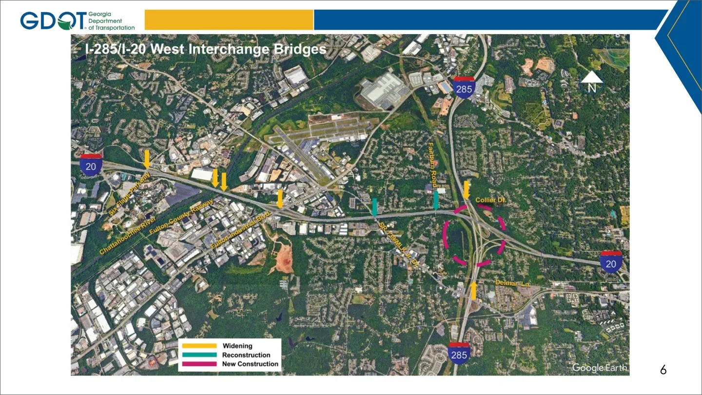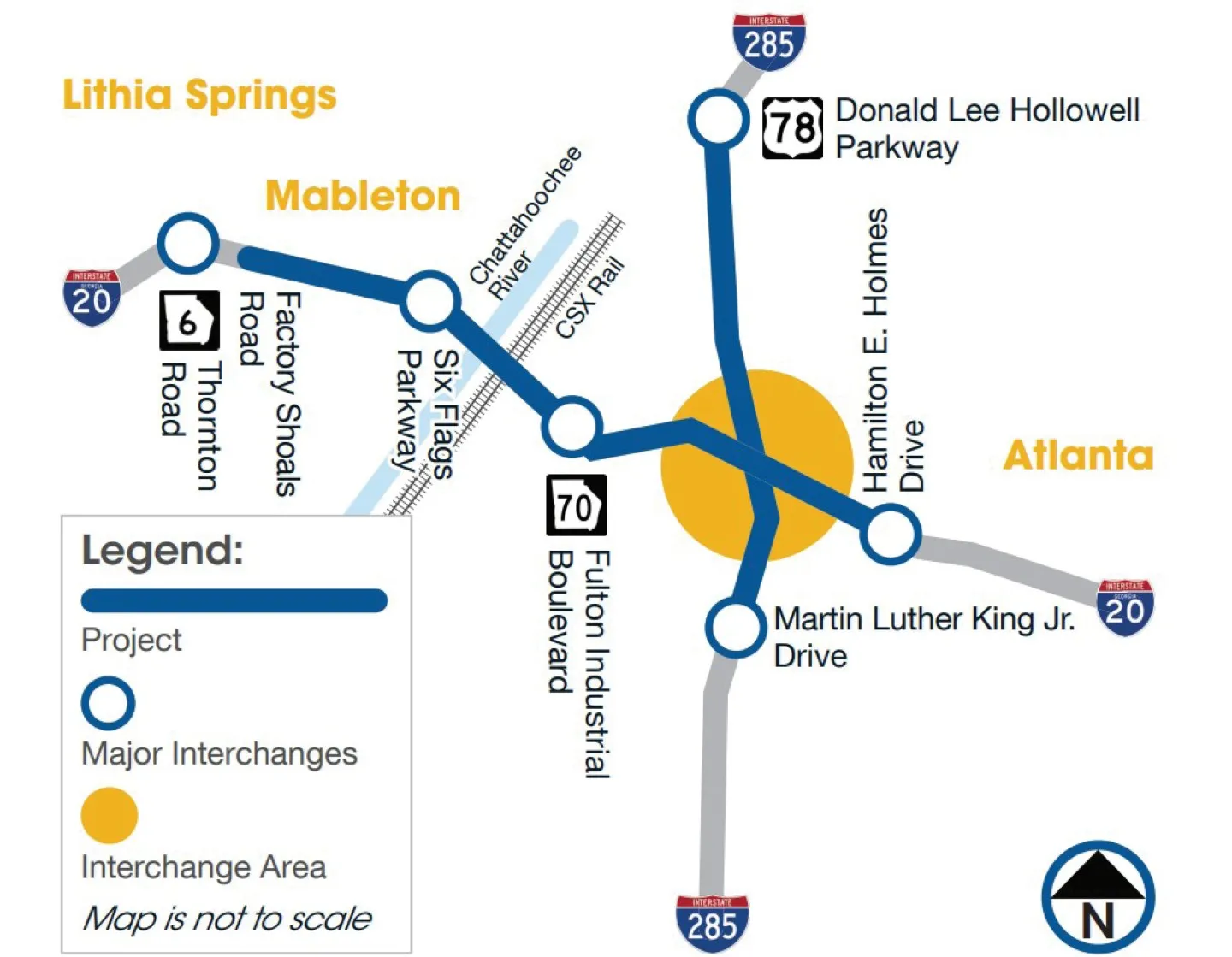 Construction began in summer 2025 on the I-285/I-20 West Interchange project. The massive project will transform the nation’s 10th-worst freight bottleneck and greatly improve mobility within the Fulton Industrial corridor. The project will reconstruct the interchange, adding lanes along I-20 in Fulton and Cobb counties. The project also includes the modification or replacement of 19 bridges. Once complete, the project will provide more efficient traffic flow through the interchange.