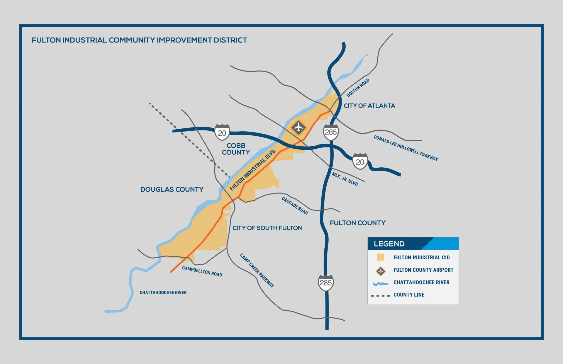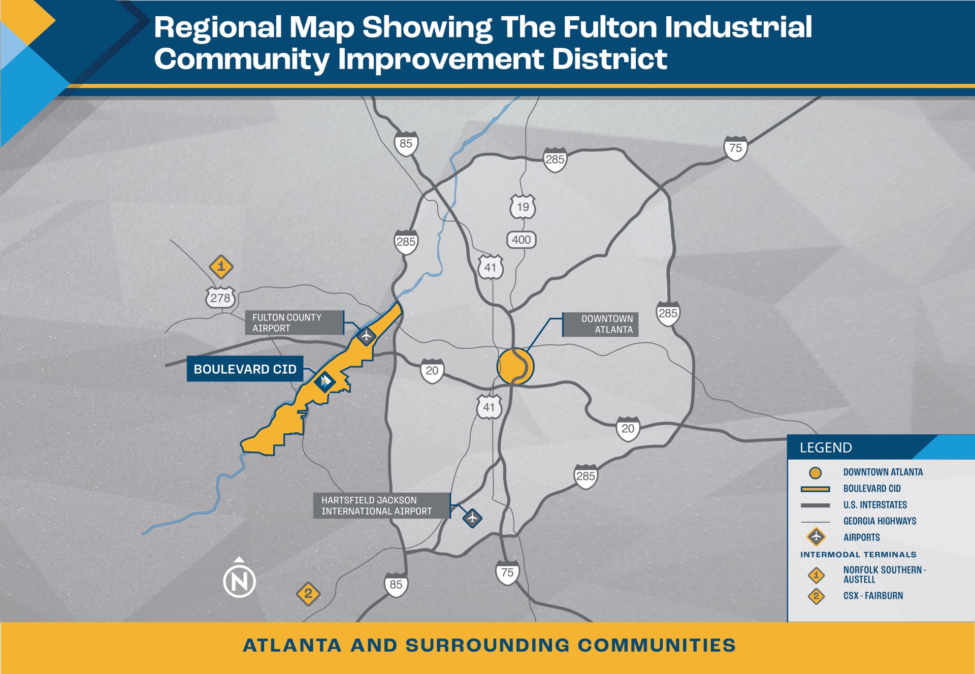 Maps of the Fulton Industrial Community Improvement District Metro Atlanta Regional Map Download Map CID Map Download Map National Impact Map Download Map Current Projects Map